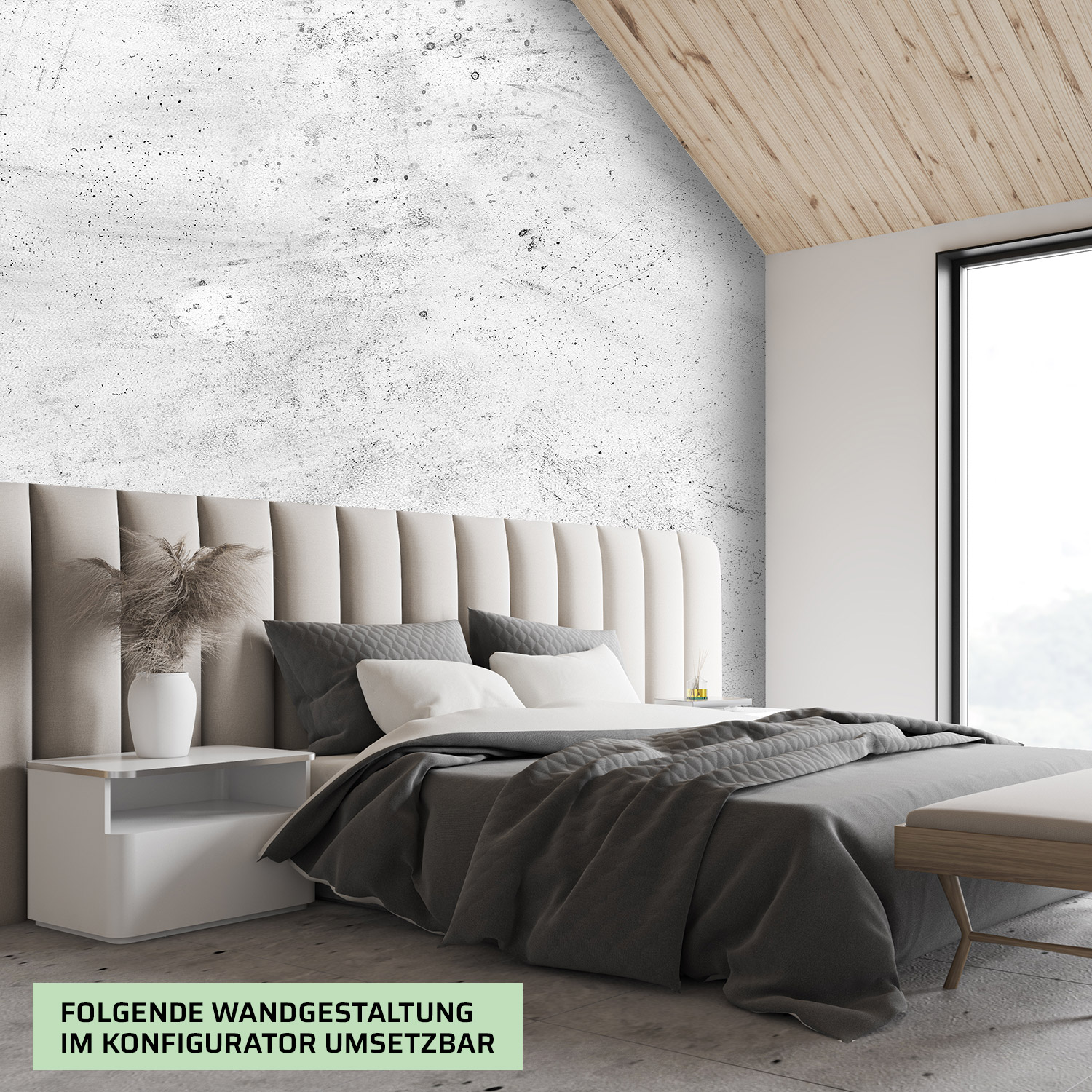 Wandverkleidung für das Schlafzimmer mit Beton V4 Motiv
