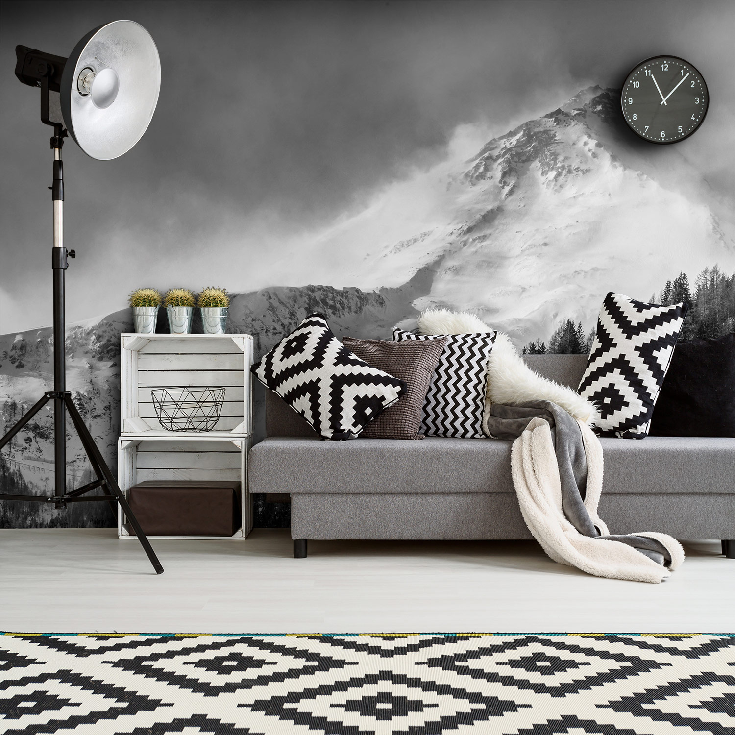 Wandverkleidung für das Wohnzimmer mit Berg V5 Motiv