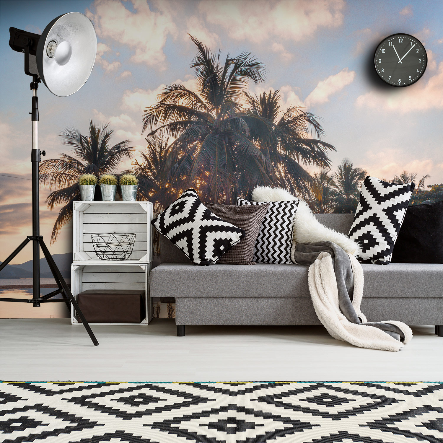 Wandverkleidung für das Wohnzimmer mit Palmen V1 Motiv