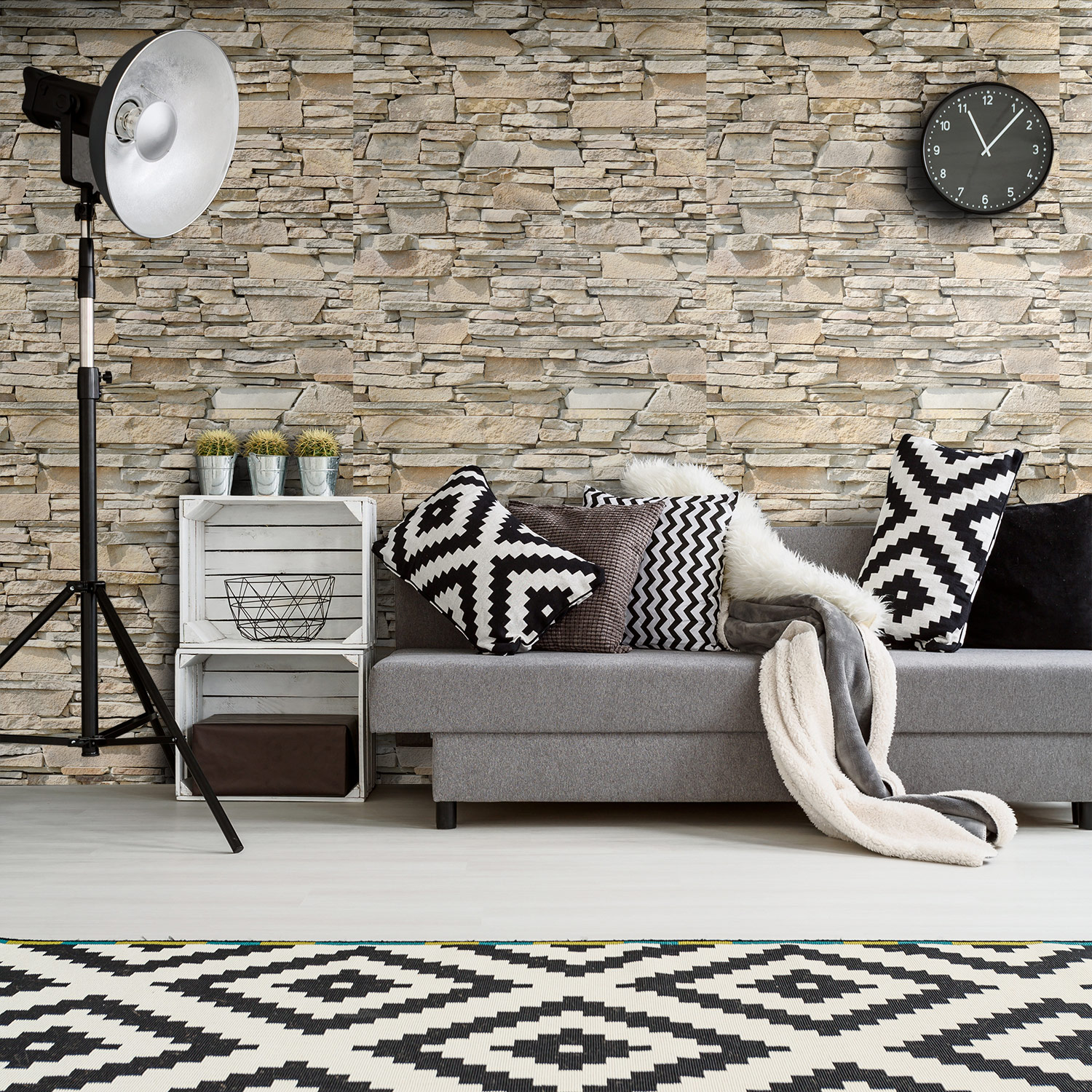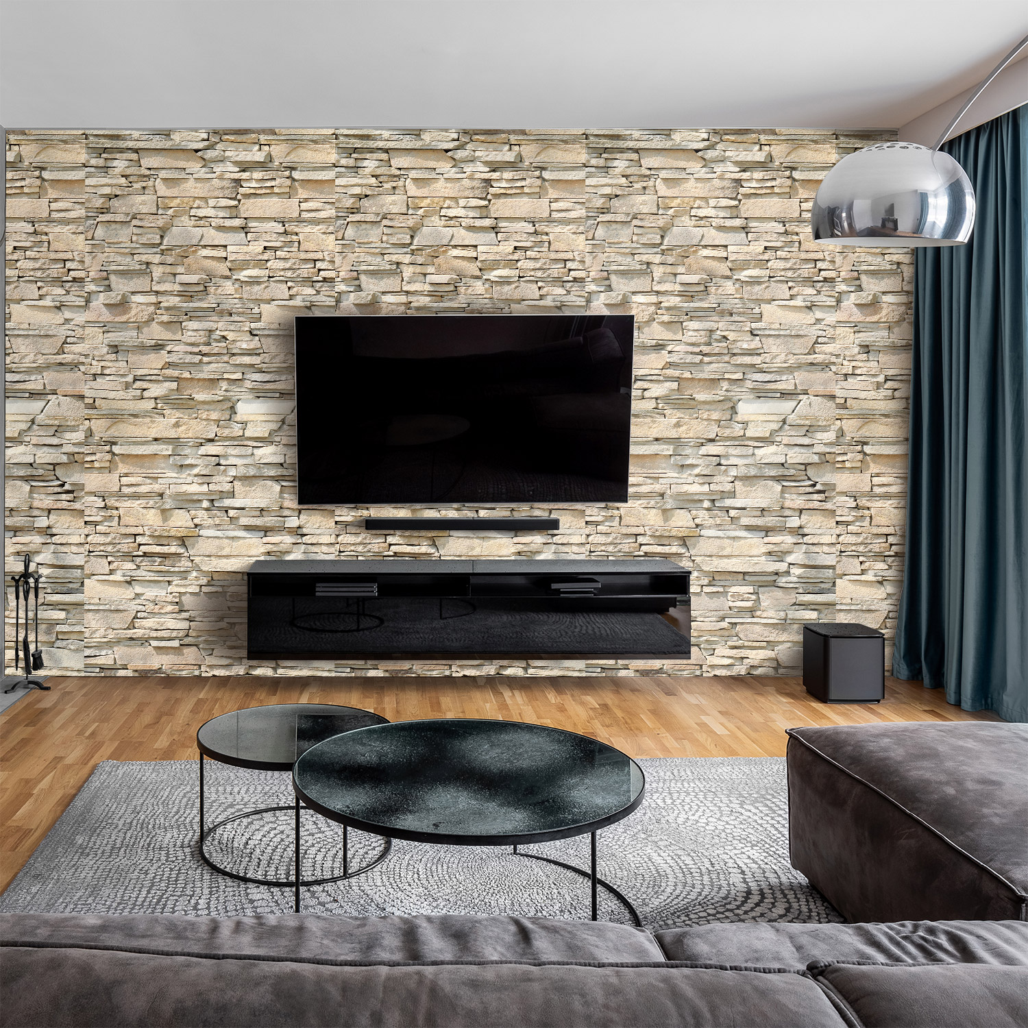 Wandverkleidung für das Wohnzimmer mit Stein V2 Motiv
