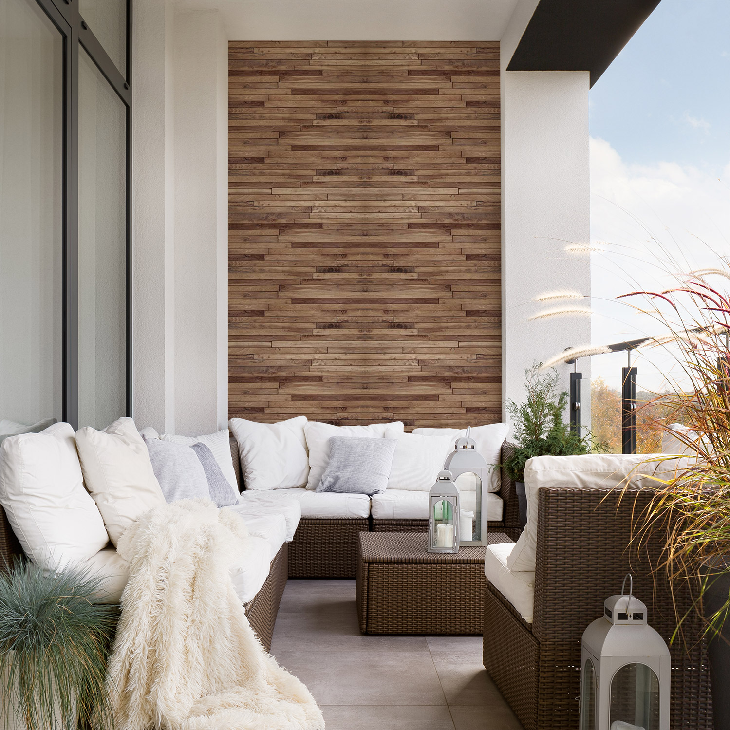 Wandverkleidung für den Outdoorbereich mit Holz V3 Motiv