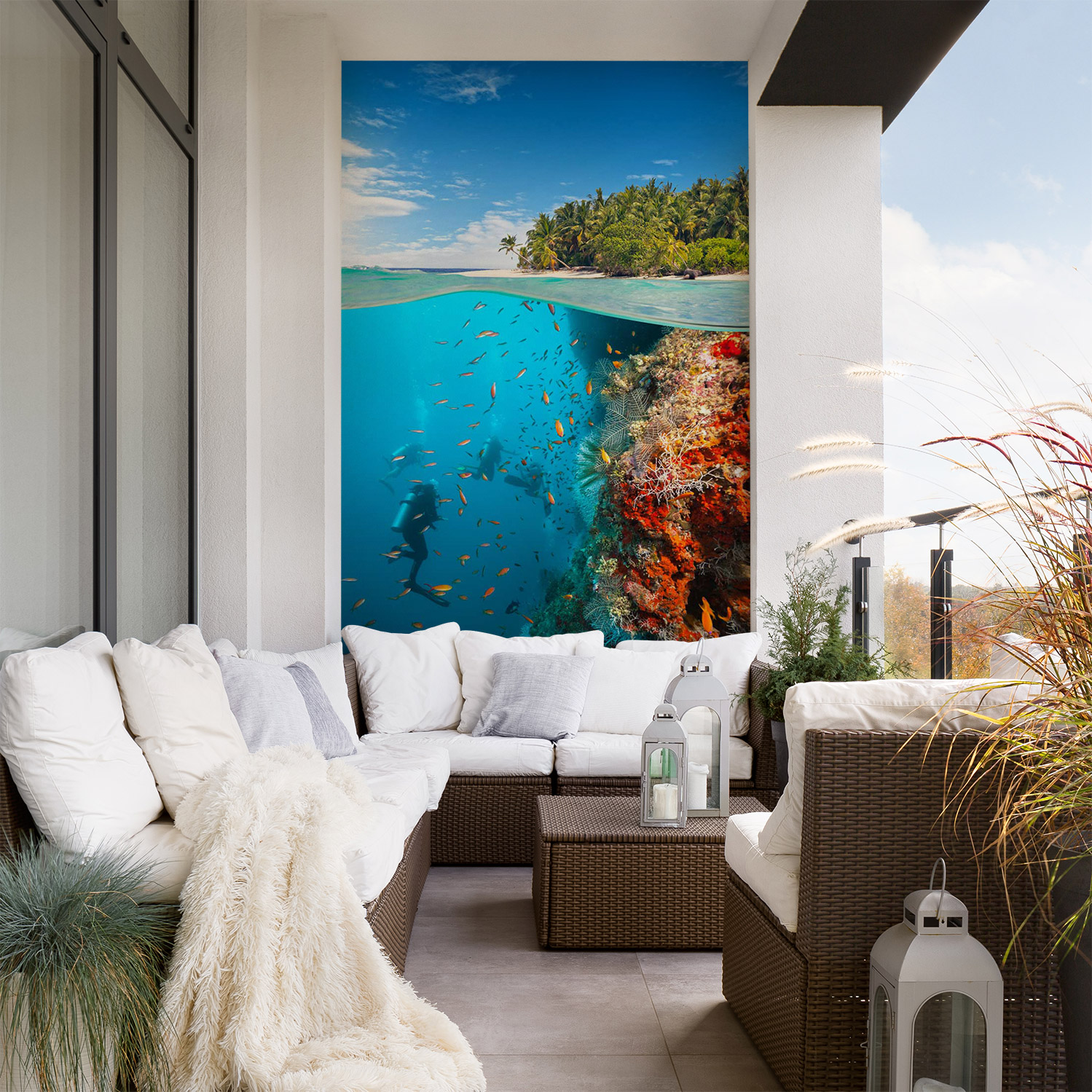 Wandverkleidung für den Outdoorbereich mit Ozean V1 Motiv