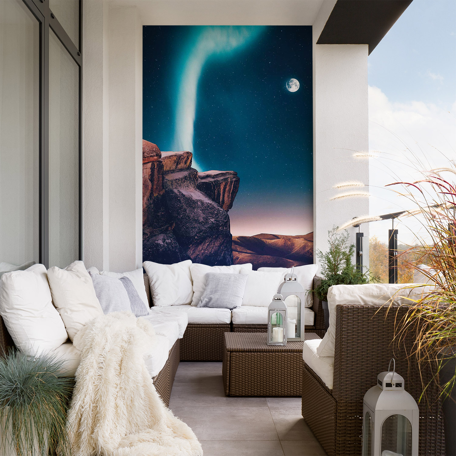 Wandverkleidung für den Outdoorbereich mit Polarlicht V1 Motiv
