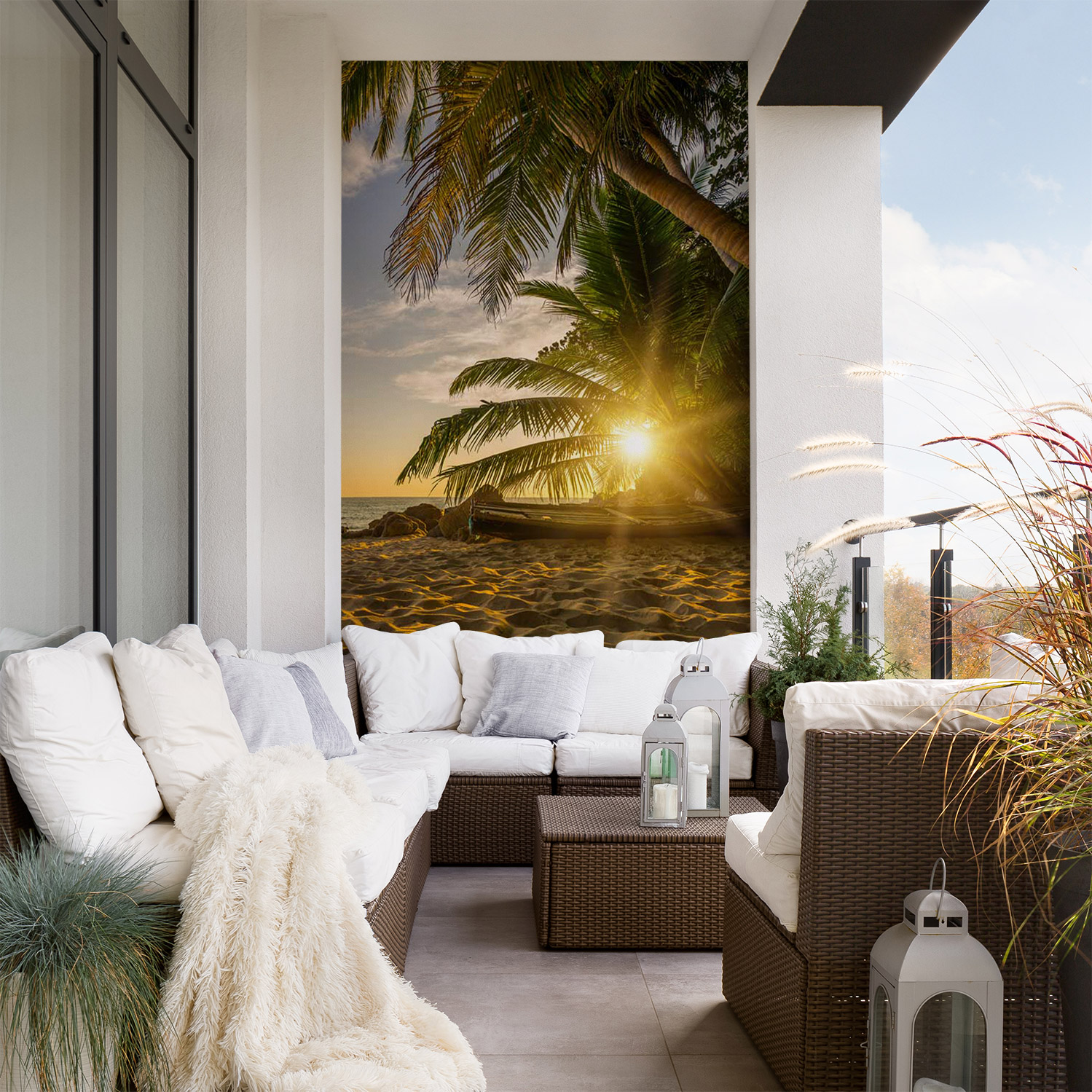 Wandverkleidung für den Outdoorbereich mit Sonnenuntergang V1 Motiv